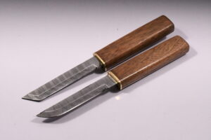 2 PC OF STE OF DAMASCUS KNIFE WITH ROSW WOOD HANDLE