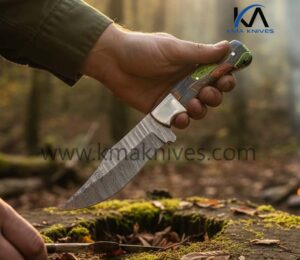 DAMASCUS HUNTER WITH FINGER PRINT MICARTA HANDLE: