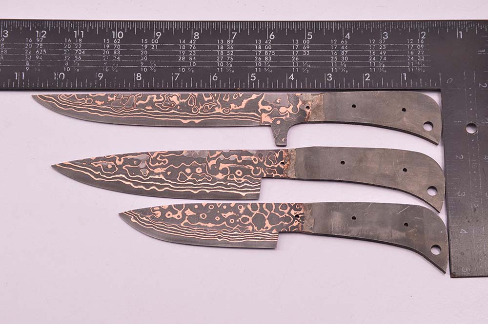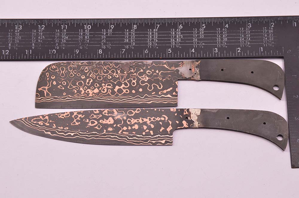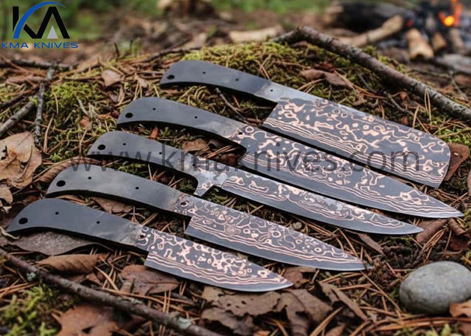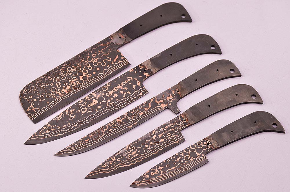 KMA HANDMADE, FORGED COPPER DAMASCUS SAN MAI FOR KITCHEN, BUTCHER AND MEAT CUTTING 5 PIECES CHEF KNIFE SET BLANK BLADES.