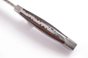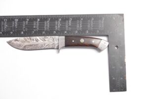HANDLE LENGTH 4.4 inches long HANDLE Rose wood and Damascus steel with mosaic pin